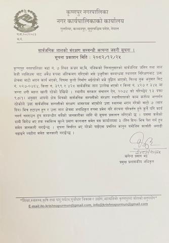 सावजनिक तालको संरक्षण सम्बन्धी सूचना