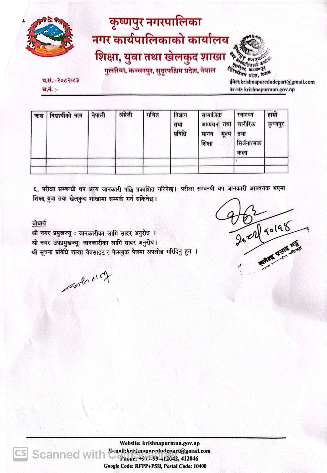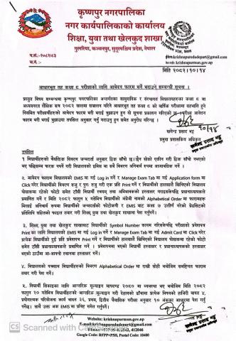 कक्षा ८ को परिक्षा आवेदन सम्बन्धी सुचना