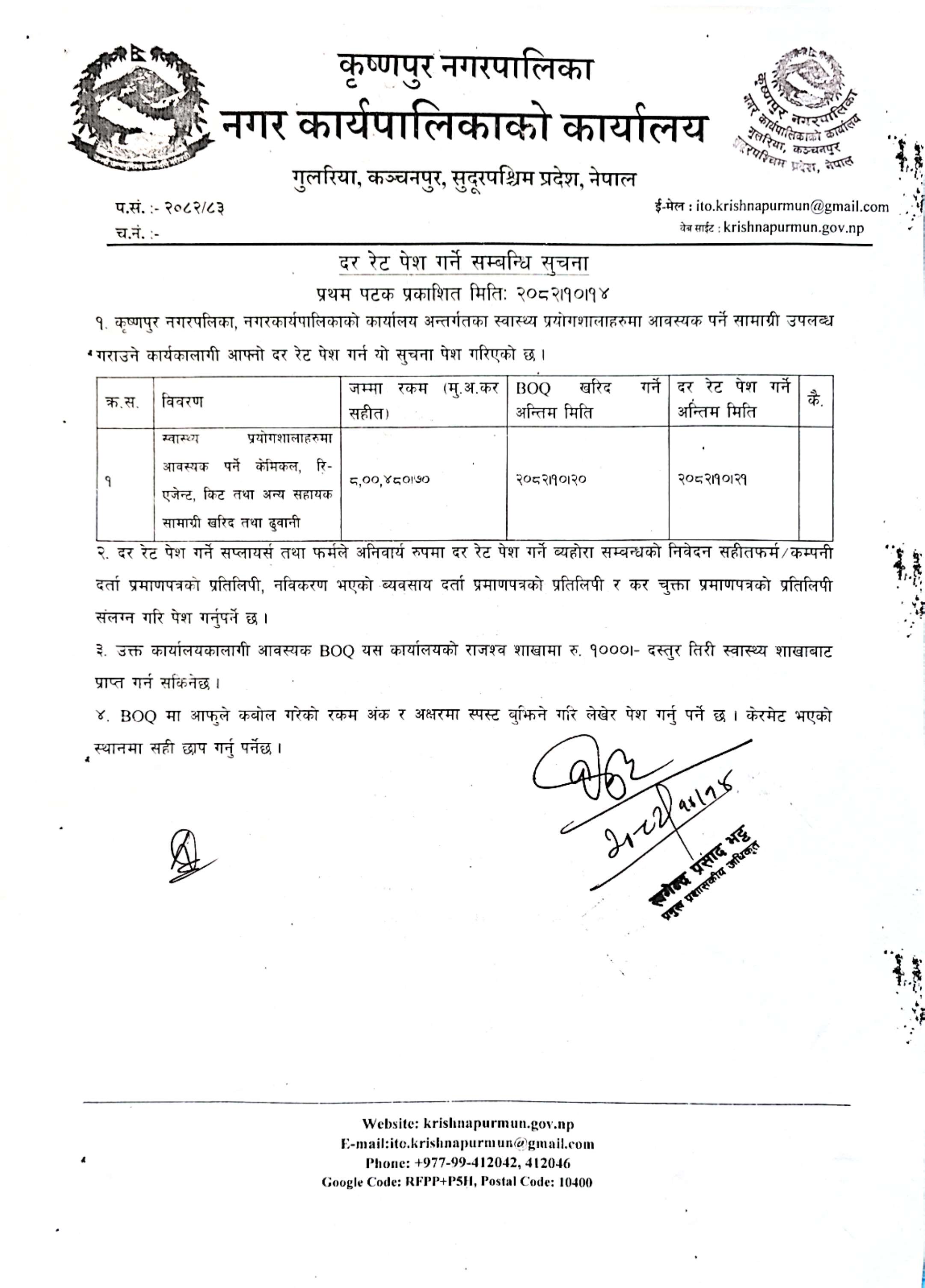 दररेट पेश गर्ने सम्बन्धी सुचना
