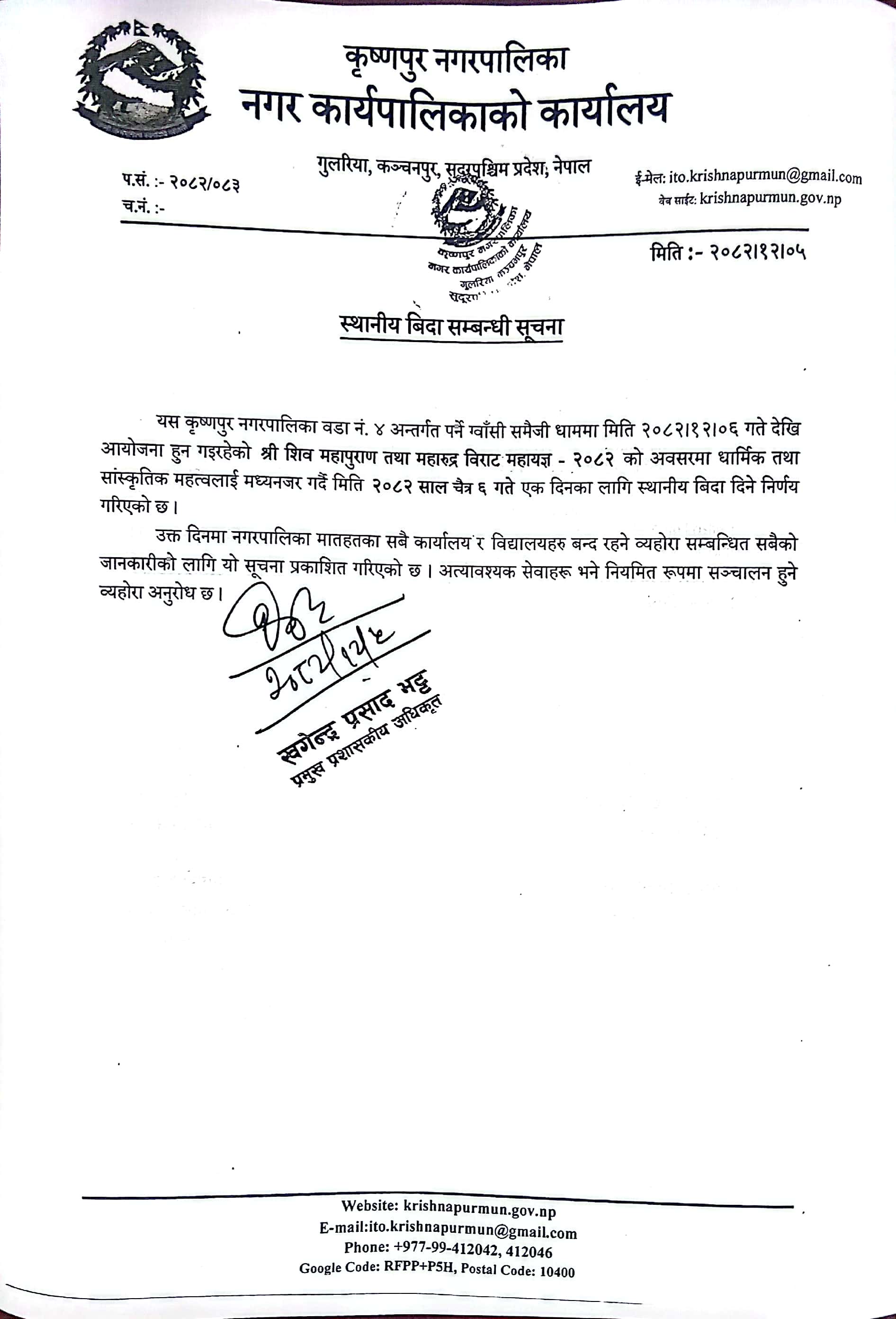 स्थनिय विदा सम्बन्धी सुचना