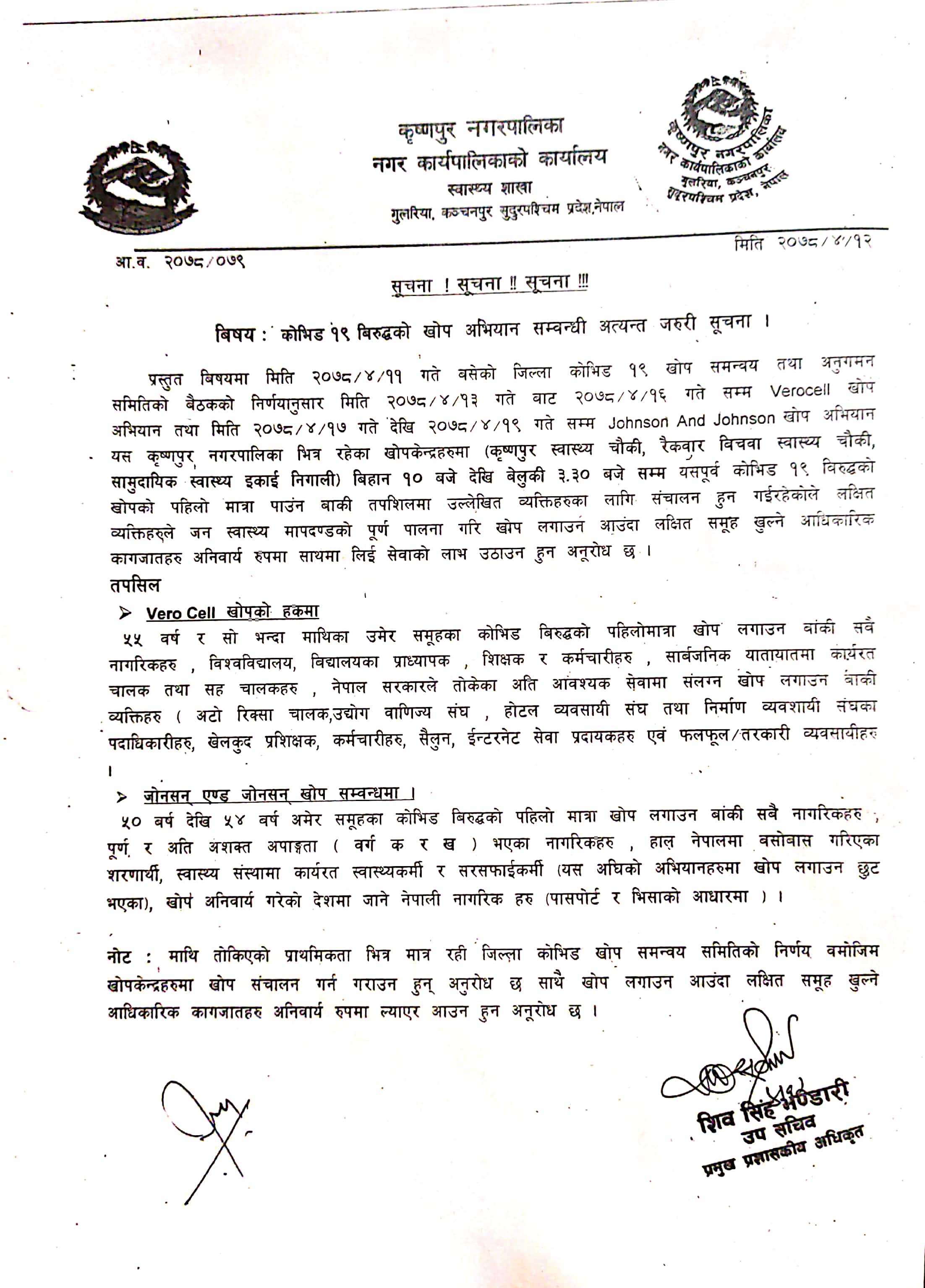 कोभिड-१९ विरुद्धको खोप अभियान सम्बन्धि सूचना