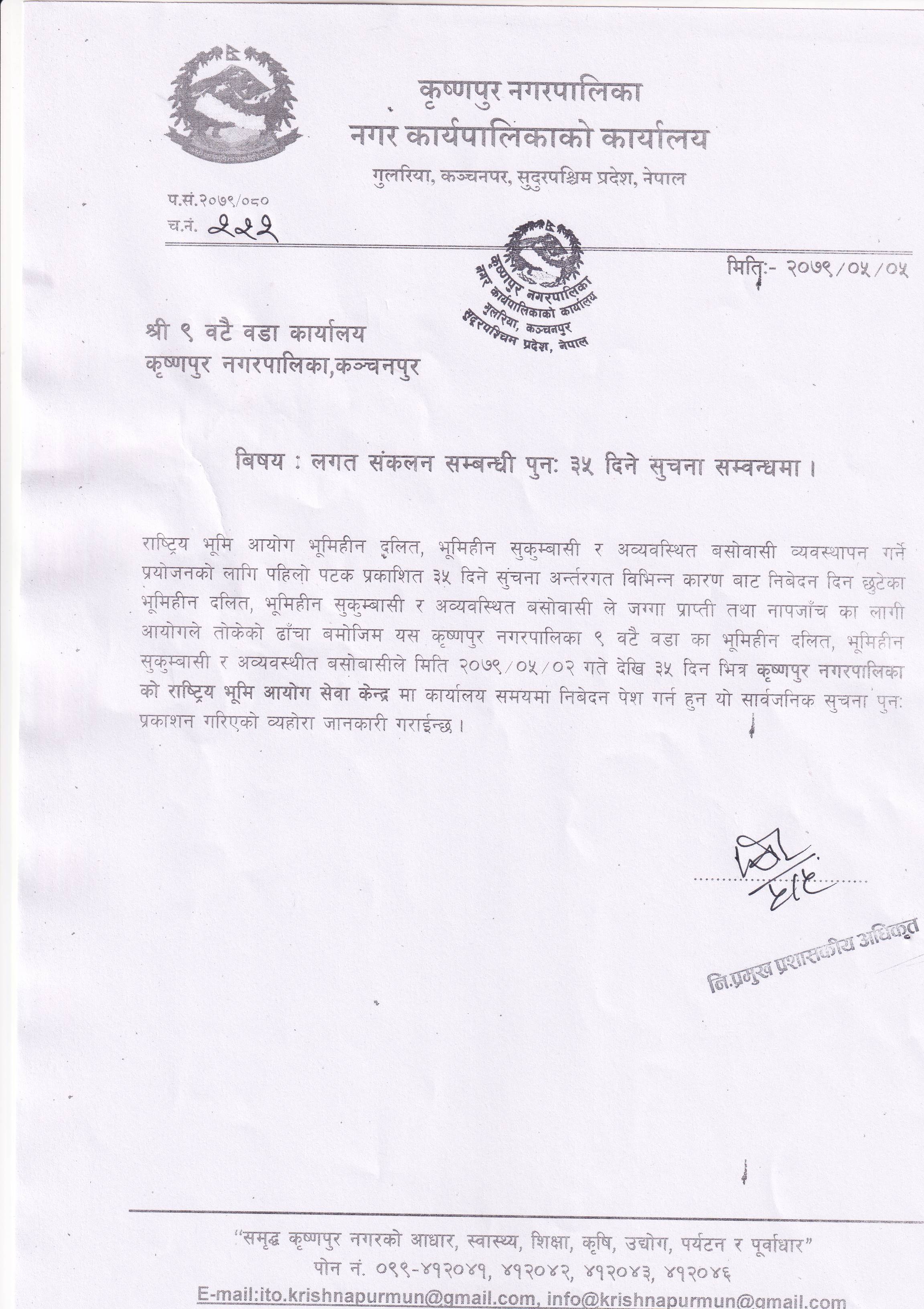 भूमि सम्बन्धी ३५ दिने सूचना