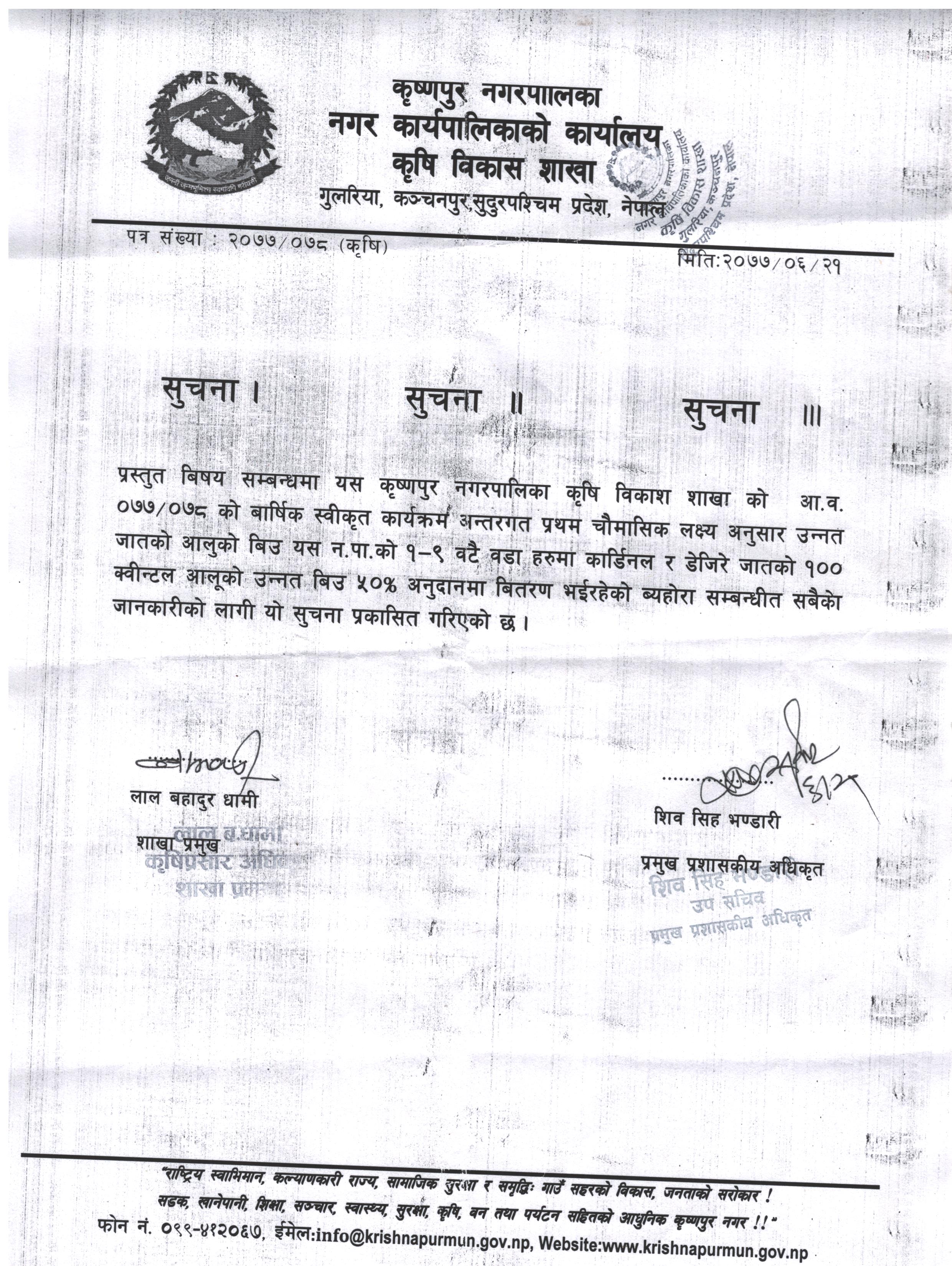 आलुको विउ वितरण सम्बन्धी सूचना