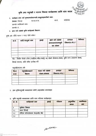 योजना माग गर्ने सम्बन्धमा