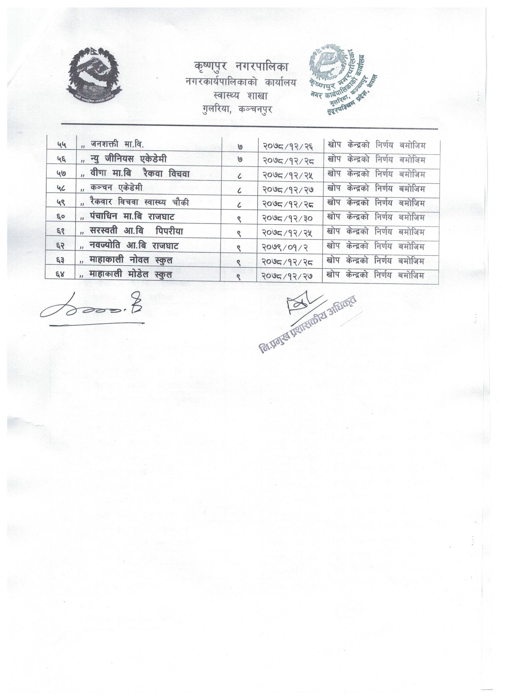 नगरपालिकाका निर्णयहरु