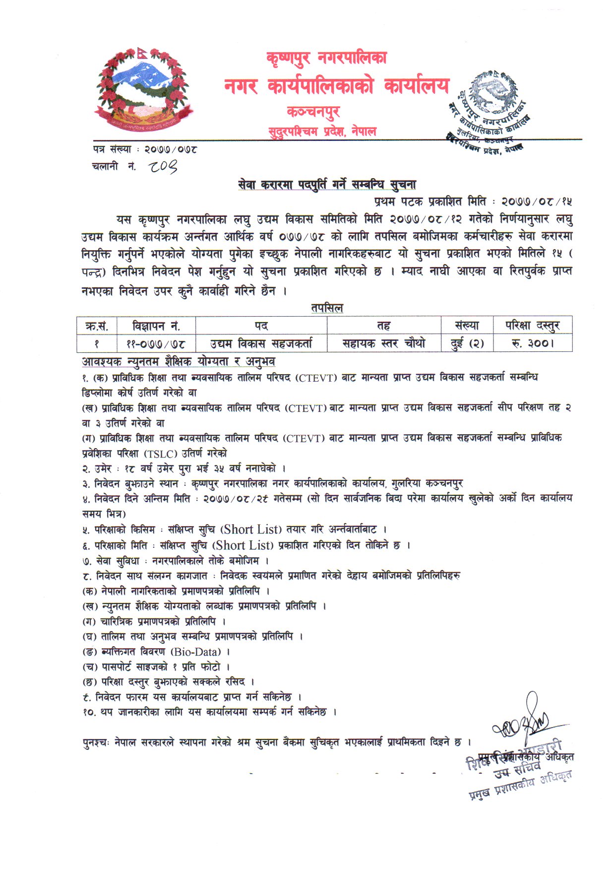 » सेवा करारमा उद्यम विकास सहजकर्ताको पदपुर्ति गर्ने सम्बन्धी सूचना