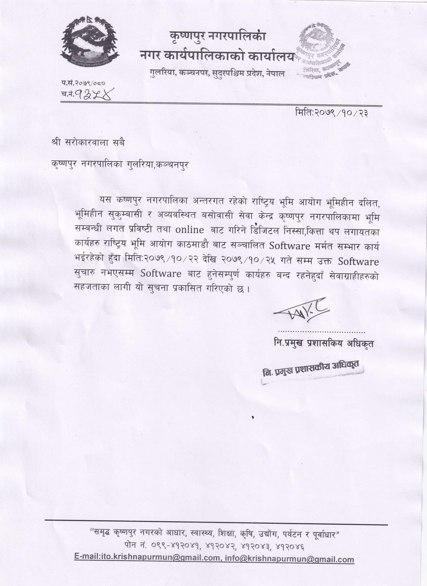 सेवा अवरुद्ध हुने सम्बन्धी सुचना
