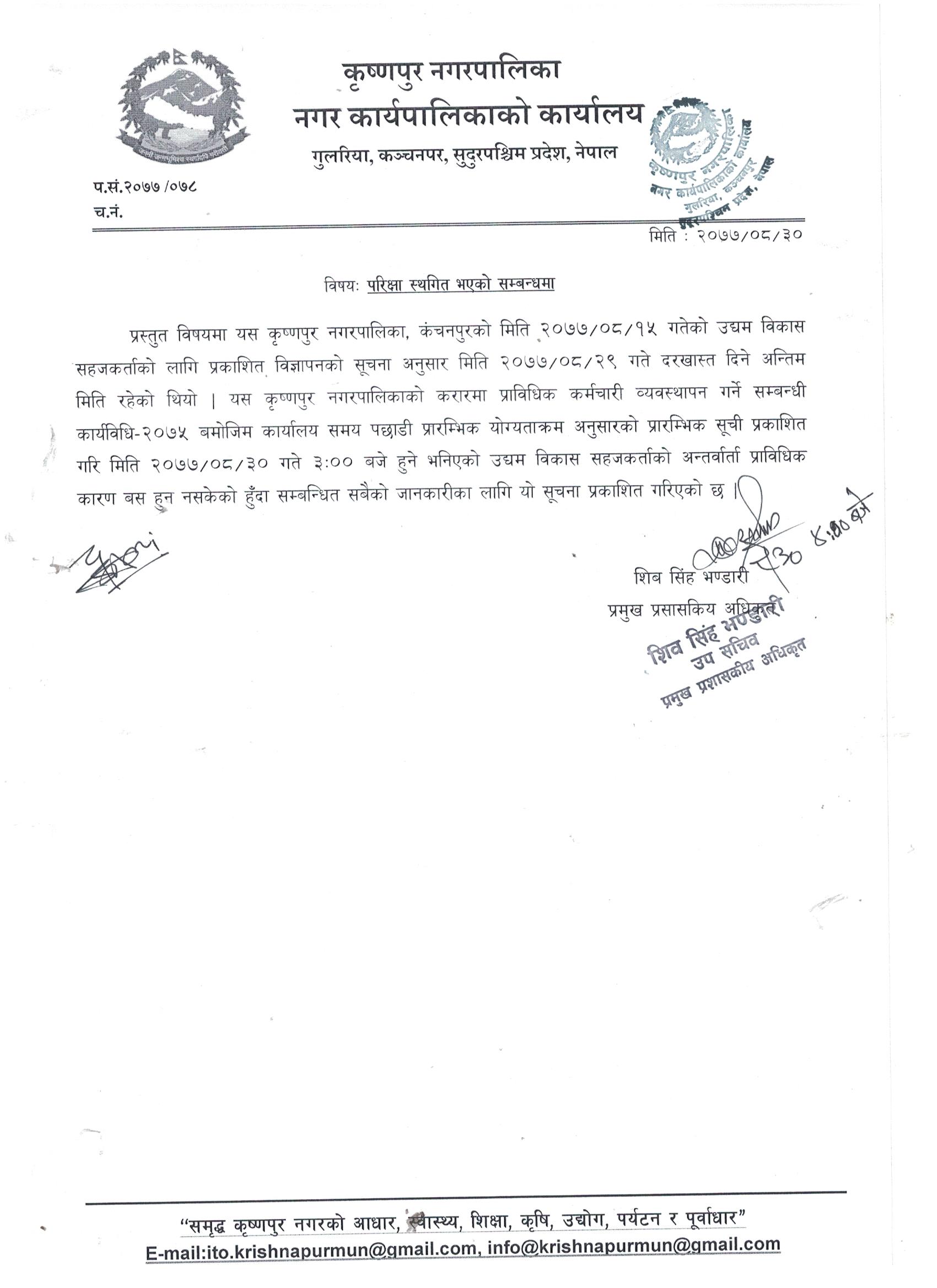 » परिक्षा स्थगित भएको सम्बन्धि सूचना