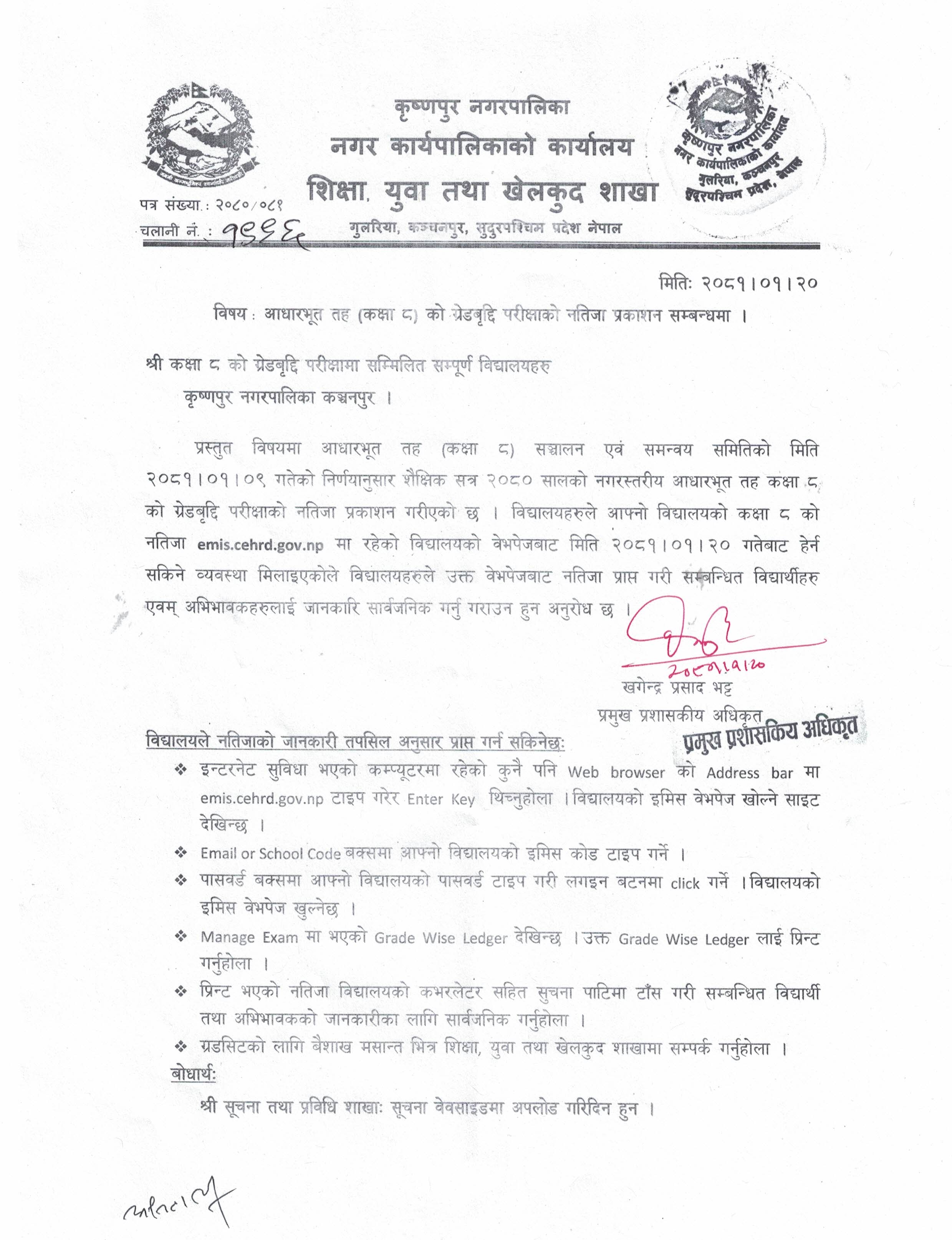 आधारभूत तहको ग्रेड वृद्धिको नतिजा प्रकाशन सम्बन्धमा