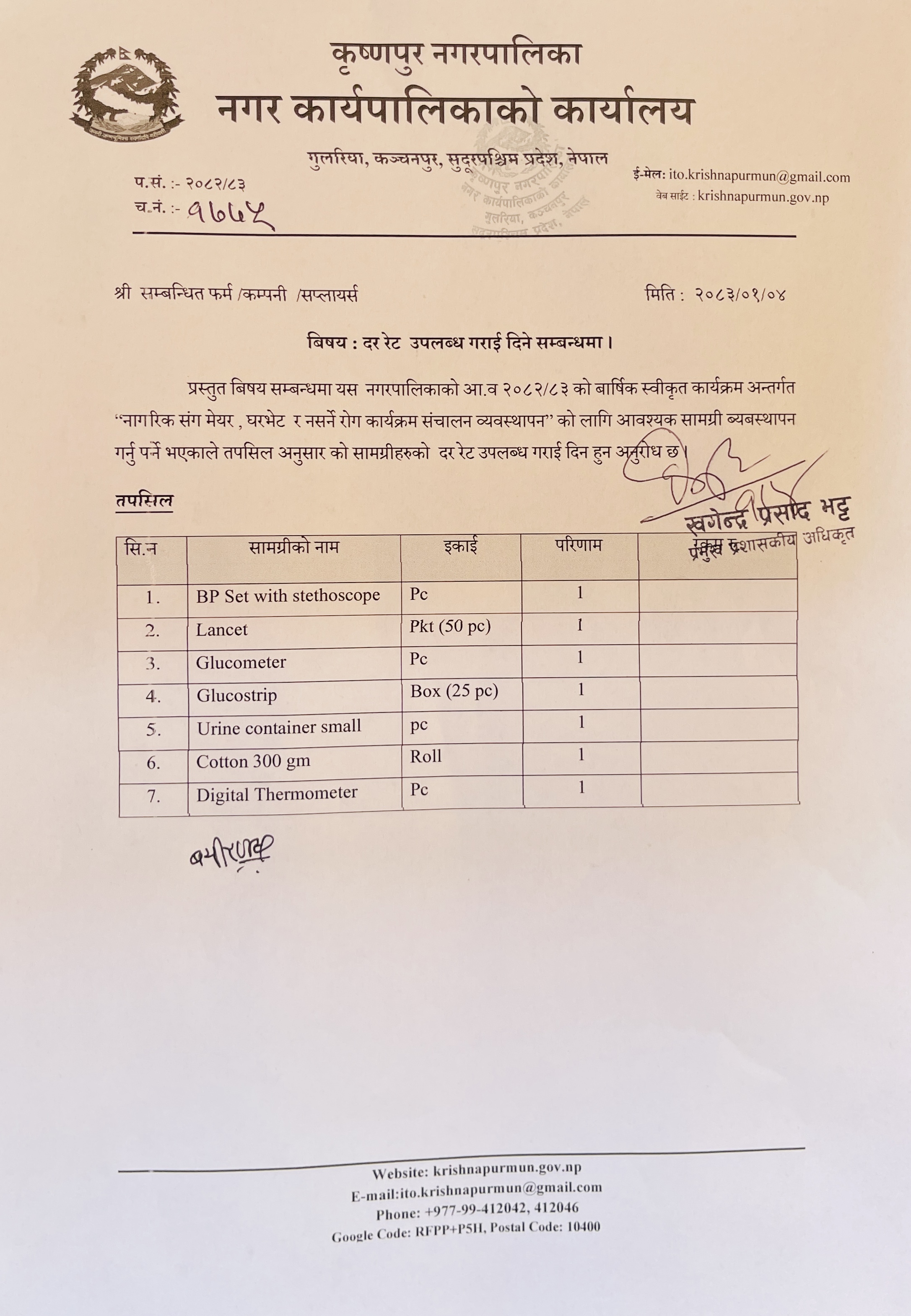 दररेट उपलब्ध गराई दिने सम्बन्धि सुचना