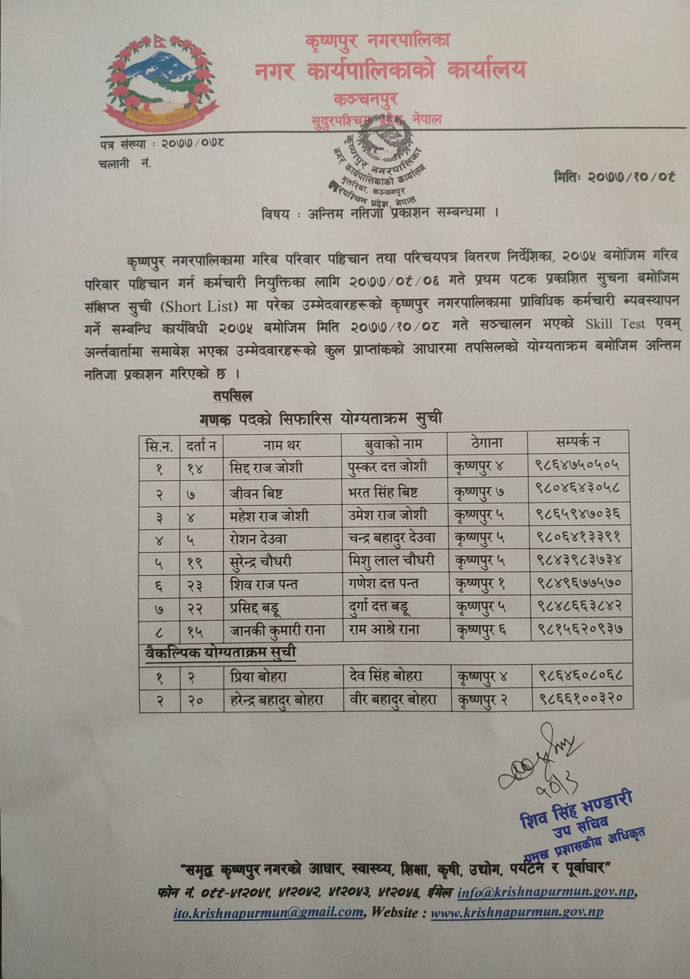 नतिजा प्रकाशन सम्बन्धी सूचना
