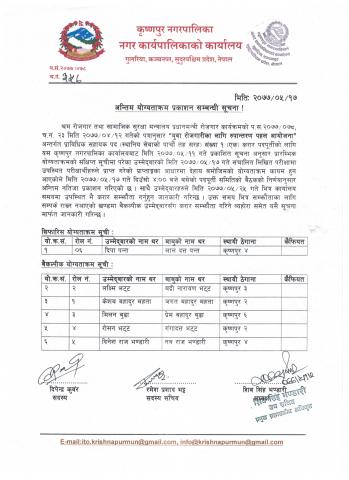 » प्रविधिक सहायक पदको अन्तिम योग्यताक्रम प्रकाशन सम्बन्धी सूचना