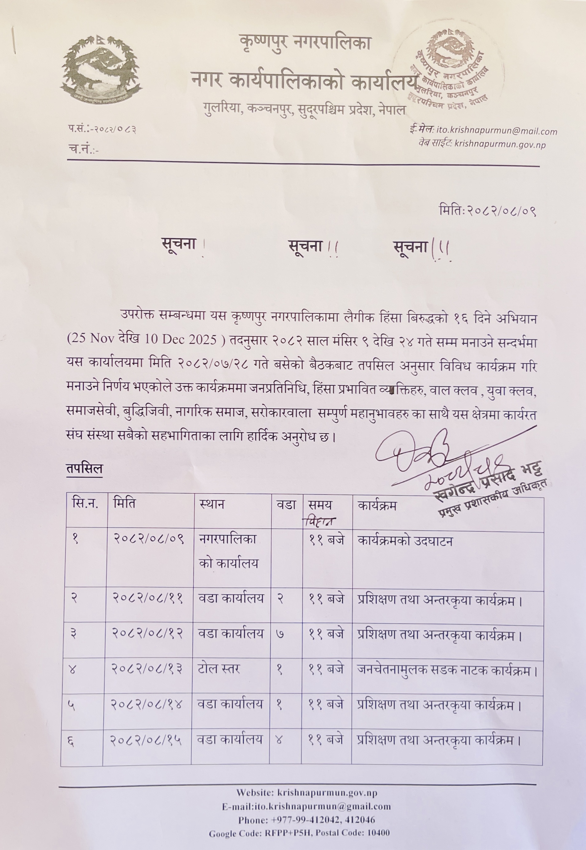 » लैङ्गिक हिन्सा विरुधको १६ दिने अभियान मनाउने सम्बन्धमा