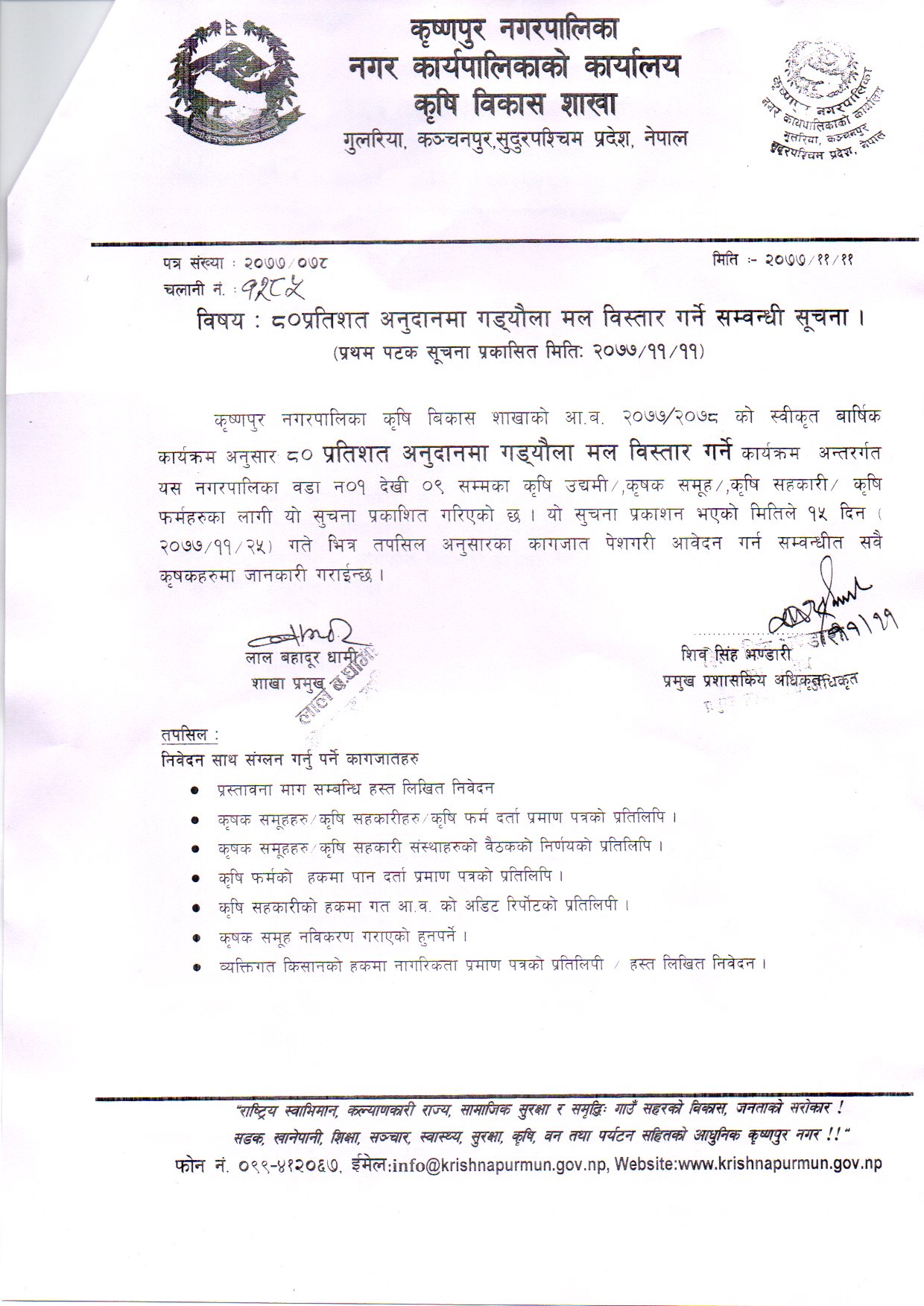 » ८०% अनुदानमा गड्यौला मल बिस्तार गर्ने सम्बन्धी सूचना