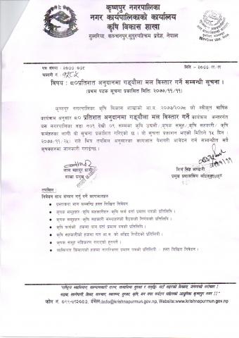 ८०% अनुदानमा गड्यौला मल बिस्तार गर्ने सम्बन्धी सूचना