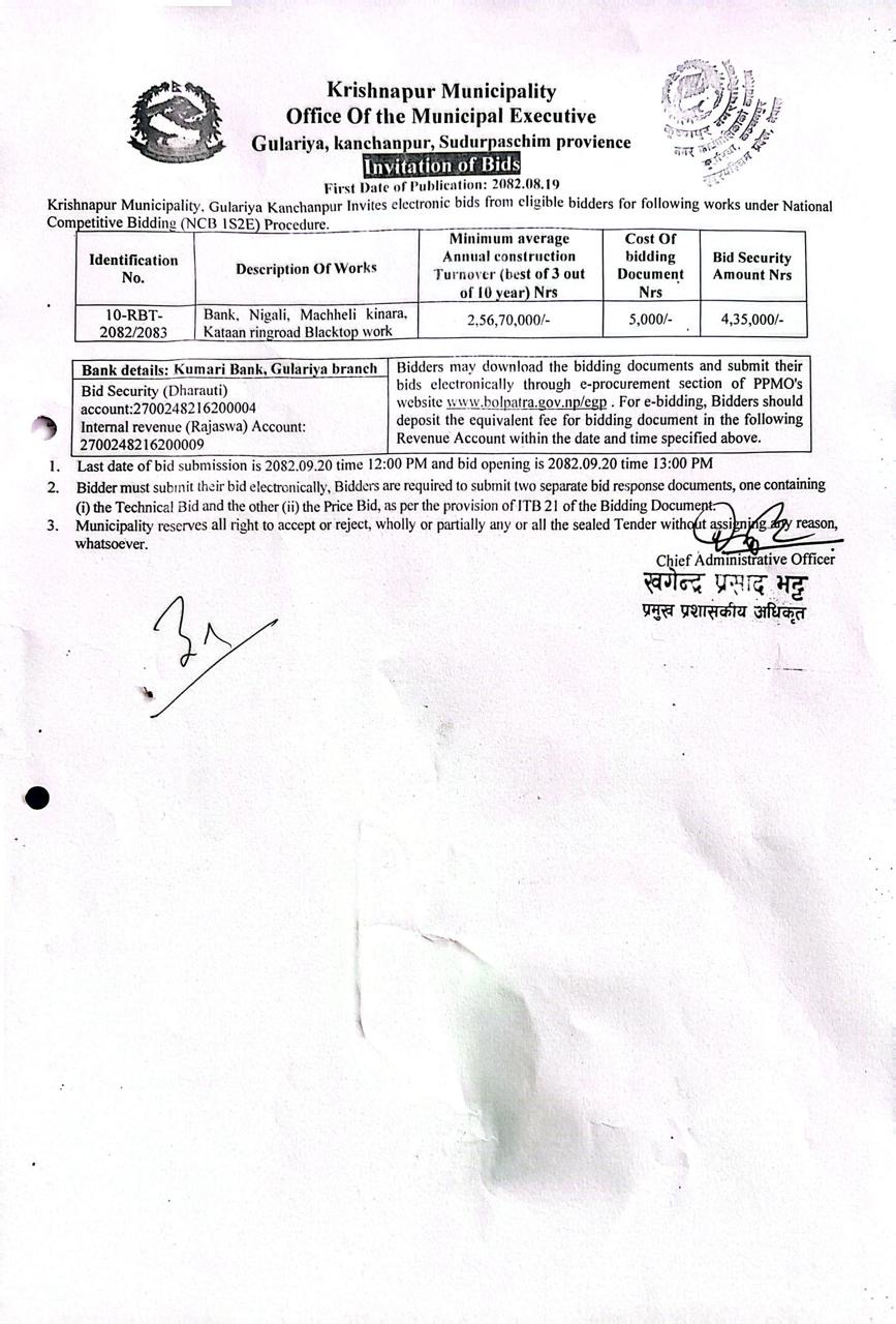 सार्वजनिक खरिद/बोलपत्र सूचना