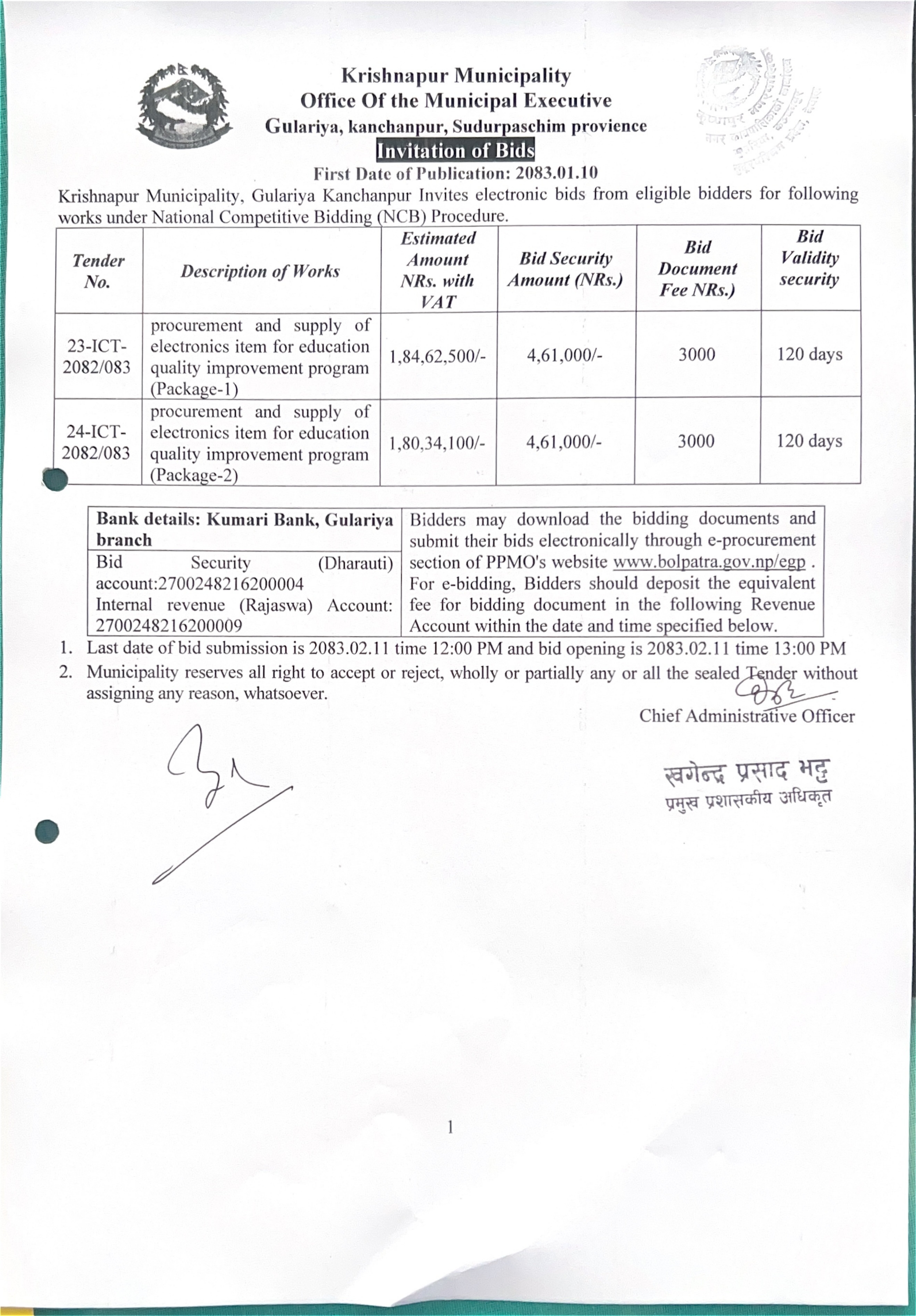 सार्वजनिक खरिद/बोलपत्र सूचना