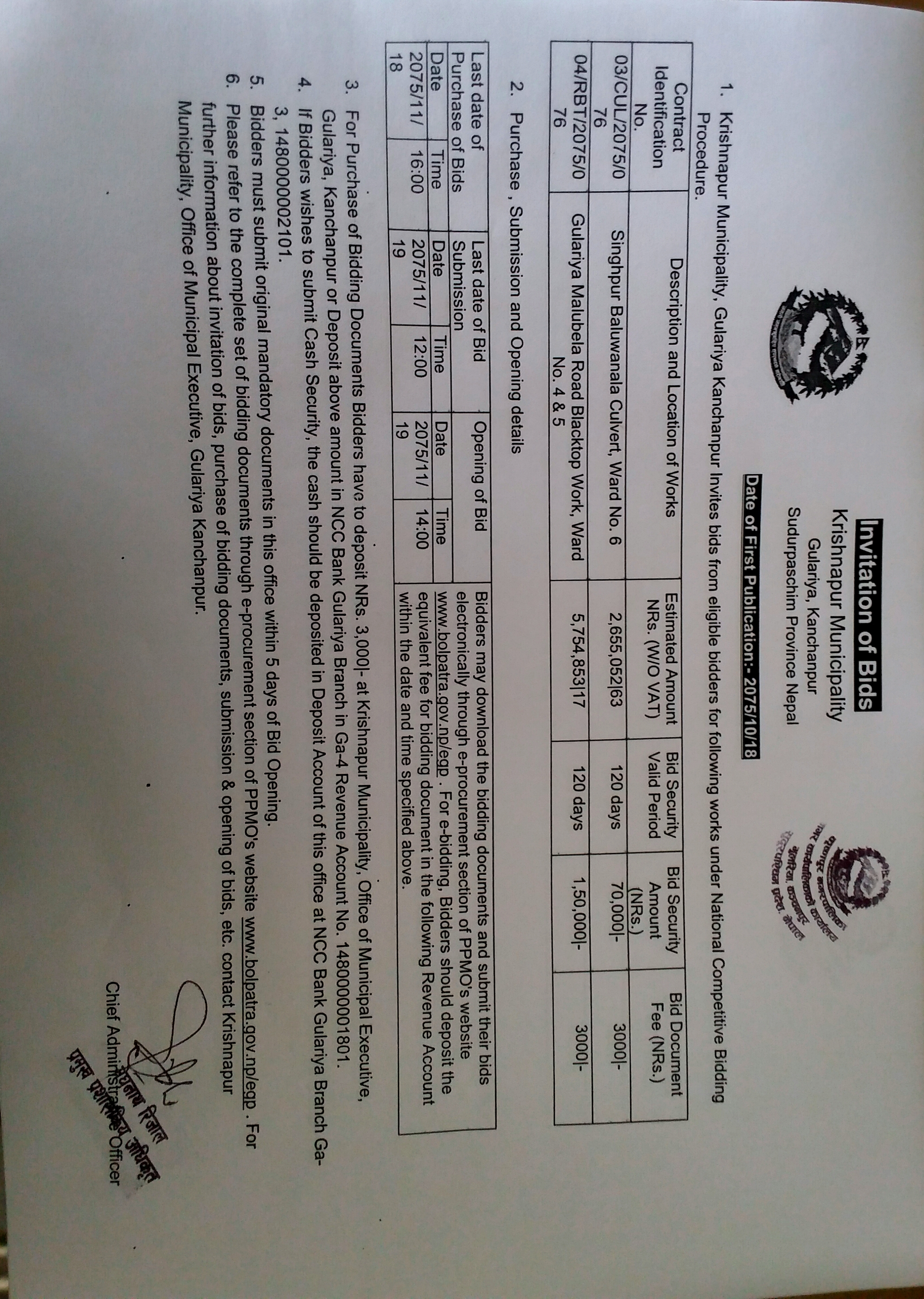कवाडी कर तथा पटके कर सम्बन्धी चौथो पटक प्रकाशित विधुतीय बोलपत्र सम्बन्धी सूचना