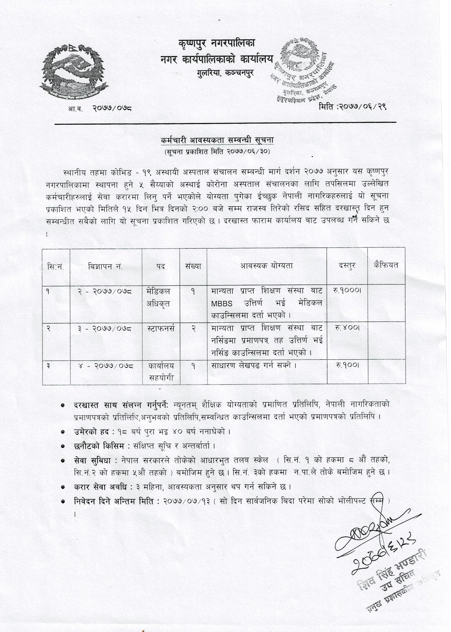 » कर्मचारी आवश्यकता सम्बन्धि सूचना