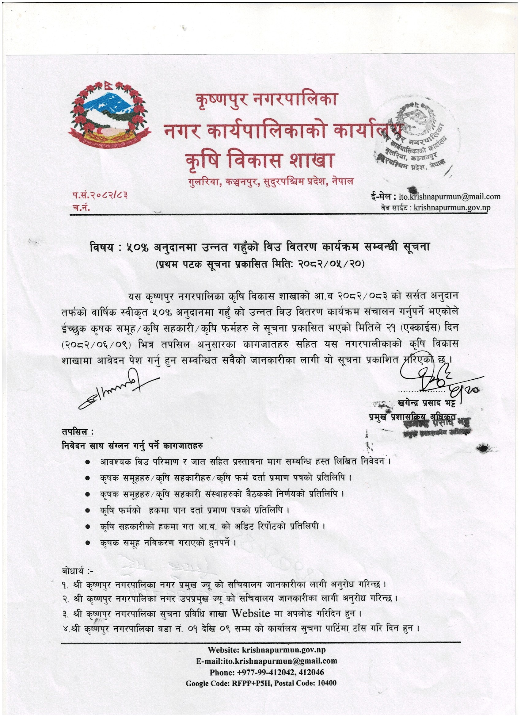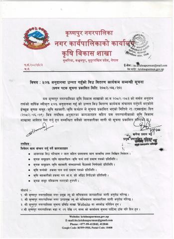५० प्रतिशत अनुदानमा उन्नत गहुको विउ वितरण सम्बन्धी सूचना